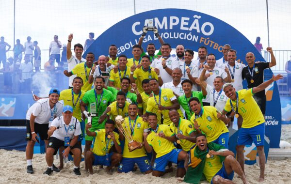 Brasil conquista pentacampeonato da Liga Evolução de beach soccer em Guarujá