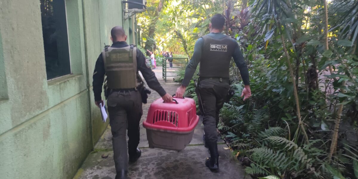Animais foram entregues ao Centro de Triagem de Animais Silvestres (Cetas) do Orquidário Municipal de Santos. Durante o atendimento de um chamado realizado pelo Grupamento de Defesa Ambiental de Guarujá (GDA), em busca de um saruê, os agentes acabaram descobrindo um comércio de materiais para construção na Estrada de Pernambuco, onde havia dois jabutis piranga (Chelonoidis carbonaria), mantidos em cativeiro irregular