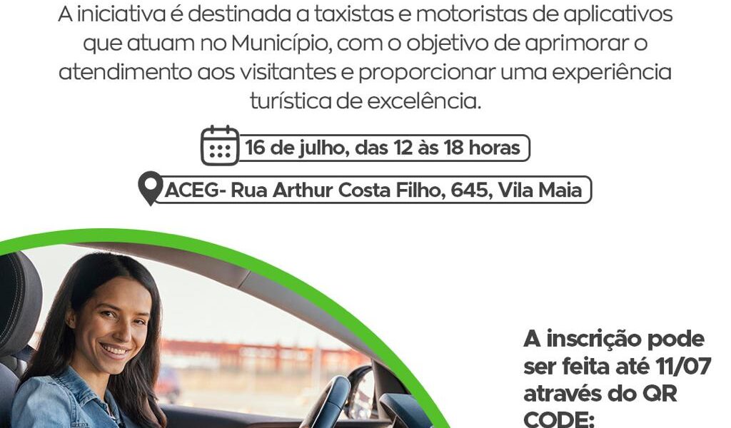 Curso presencial vai qualificar taxistas e motoristas de aplicativo com foco no bom atendimento ao turista e na segurança do transporte; a inscrição é on-line, até o dia 14, por meio de formulário no Google Forms. A Prefeitura de Guarujá, por meio da Secretaria Municipal de Turismo (Setur), promove no próximo dia 17, a 2ª edição do Capacita TUR – Capacitação