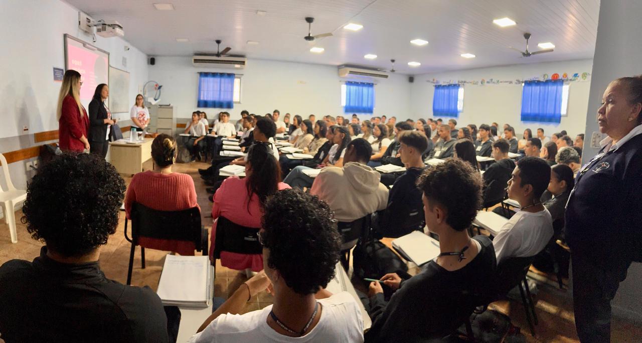 Além de apresentar o trabalho realizado pela Guarda Civil Municipal (GCM), a equipe também promoveu um espaço de diálogo com os jovens, reforçando valores de respeito, igualdade de gênero e cidadania.