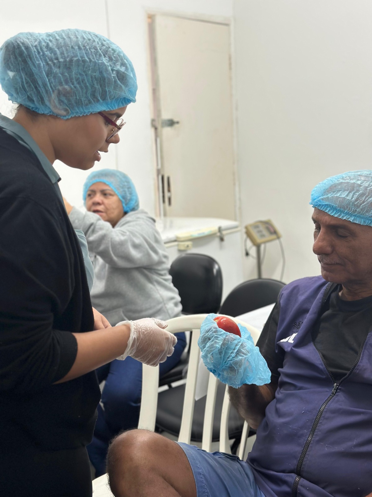 Eles conduzem a realização do Projeto Feira da Cidadania no Município. O preparatório focou na qualidade e segurança de toda a cadeia produtiva, desde a retirada dos alimentos nos supermercados, passando pelo processo de seleção, até a distribuição para as famílias atendidas. Os funcionários receberam orientações sobre redução de desperdício e como identificar se frutas, legumes e verduras estão adequados para o consumo, observando características sensoriais como cor, textura e aroma.