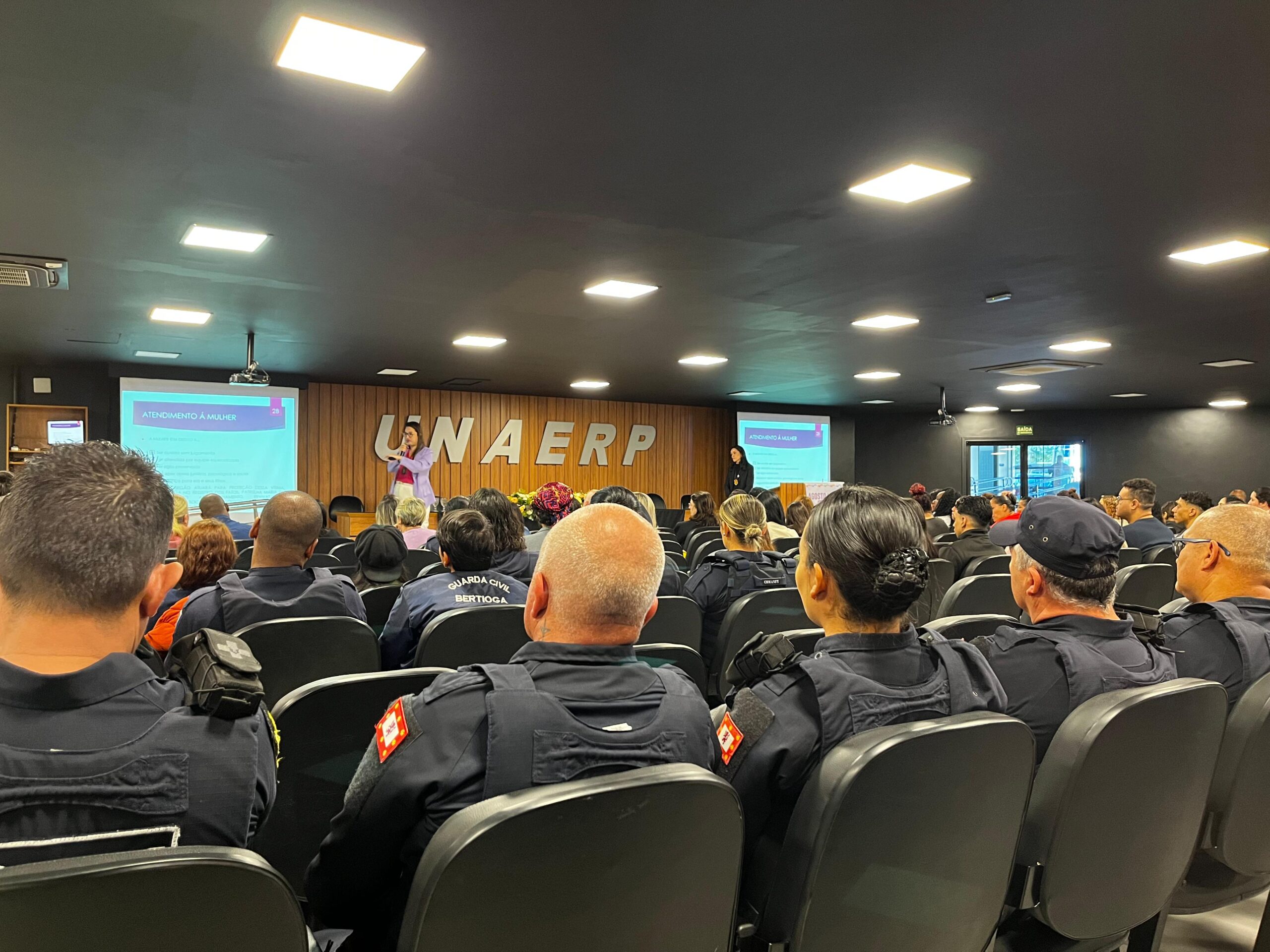 O curso especial “Agosto Lilás: a atuação policial no combate à violência doméstica” reuniu cerca de 150 pessoas no auditório da Unaerp, na última quinta-feira (7). O evento integrou a programação do Agosto Lilás, mês dedicado à conscientização e ao fortalecimento das ações de enfrentamento à violência contra a mulher, em alusão ao aniversário da Lei Maria da Penha.