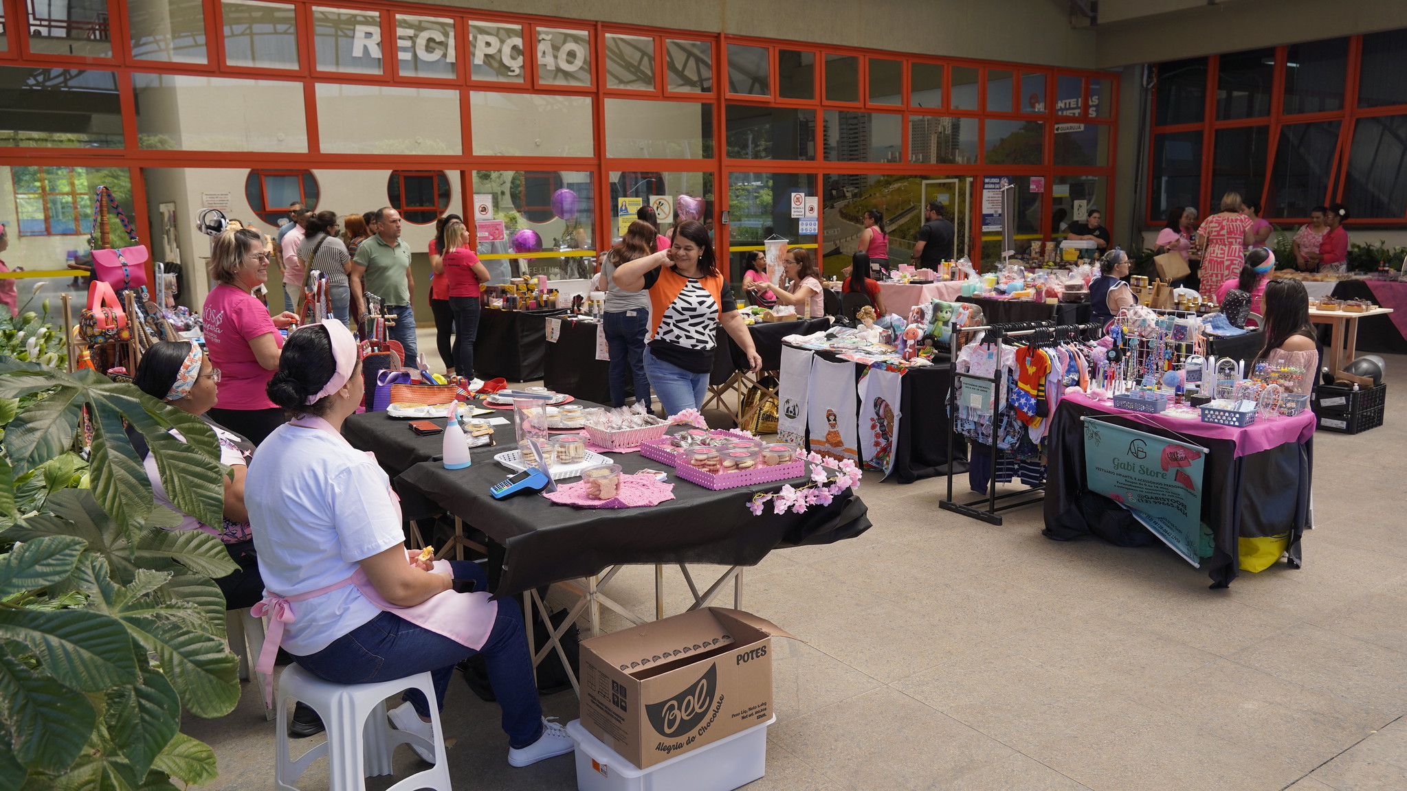 A feira é uma plataforma essencial para acolhimento e networking de empreendedoras de diversos setores, pois oferece um espaço valioso para que as participantes possam apresentar e comercializar seus trabalhos. Os itens expostos abrangem uma vasta gama de produtos, desde turbantes, bolsas, laços, nécessaires e calçados, até hidratantes, demonstrando a diversidade e a criatividade do empreendedorismo feminino de Guarujá.