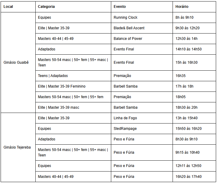 A competição, que já é um marco no calendário nacional, também se destaca por suas inovações, como a inclusão de novas categorias e formatos de competição, garantindo que todos os níveis de atletas possam participar e se desafiar.