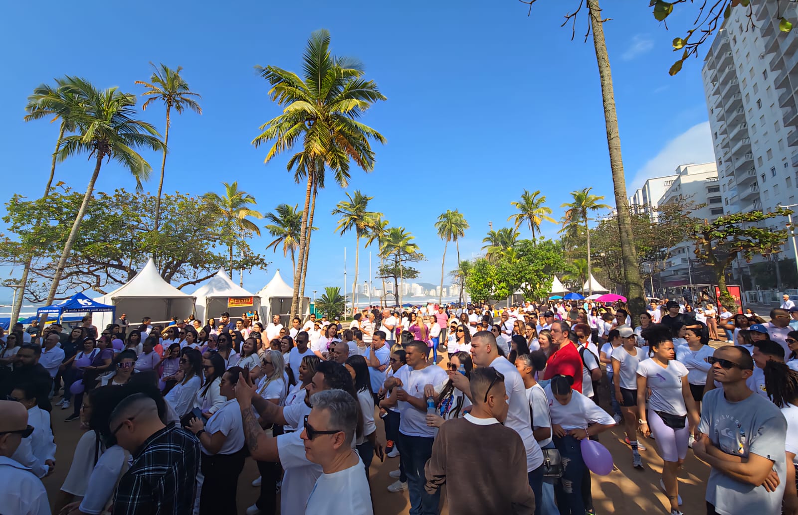 Quase mil pessoas participaram, no último domingo (17), da caminhada em alusão à Campanha Agosto Lilás, mês dedicado ao enfrentamento da violência contra a mulher. A iniciativa foi promovida pelo Fundo Social de Solidariedade (FSS) de Guarujá, reforçando o compromisso do Município com a promoção de informação, prevenção e acolhimento às mulheres.